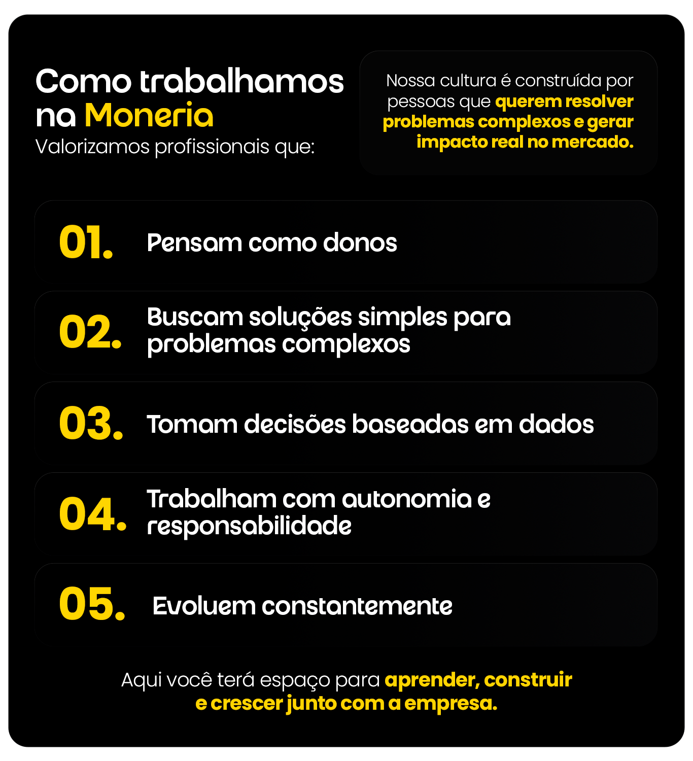 Trabalhar na Moneria significa participar da criação de uma infraestrutura que movimenta o comércio digital.
